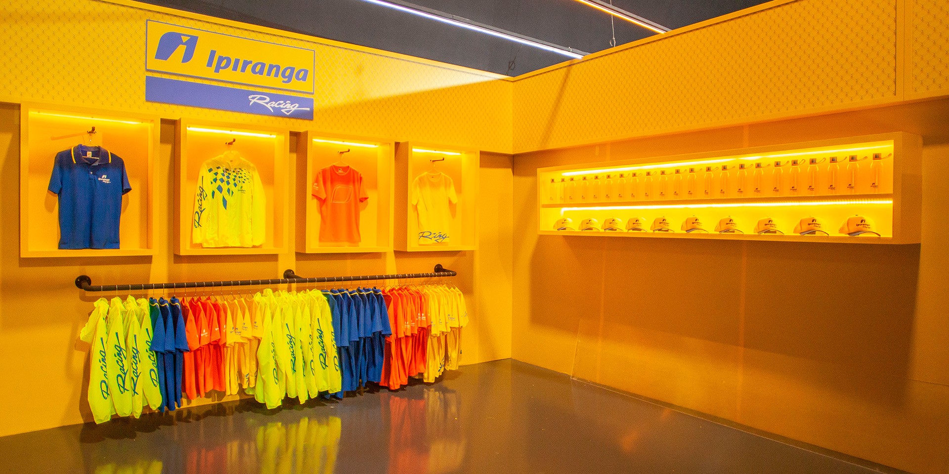 Entre os trabalhos desenvolvidos com a Ipiranga, fizemos algumas ativações em postos e eventos. E em destaque, criamos e produzimos uma coleção de roupas para a linha Racing.